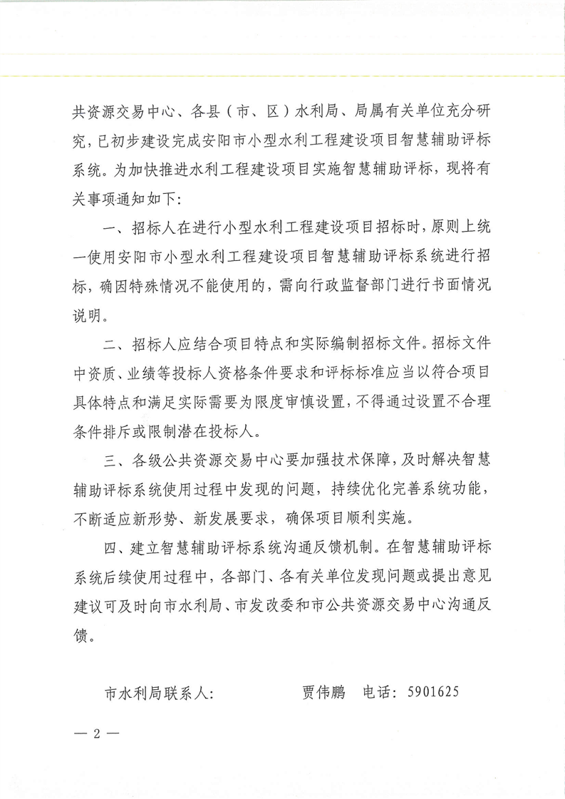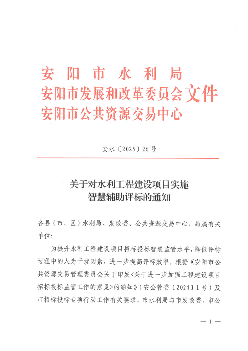 关于对水利工程建设项目实施智慧辅助评标的通知